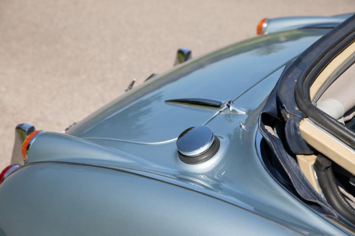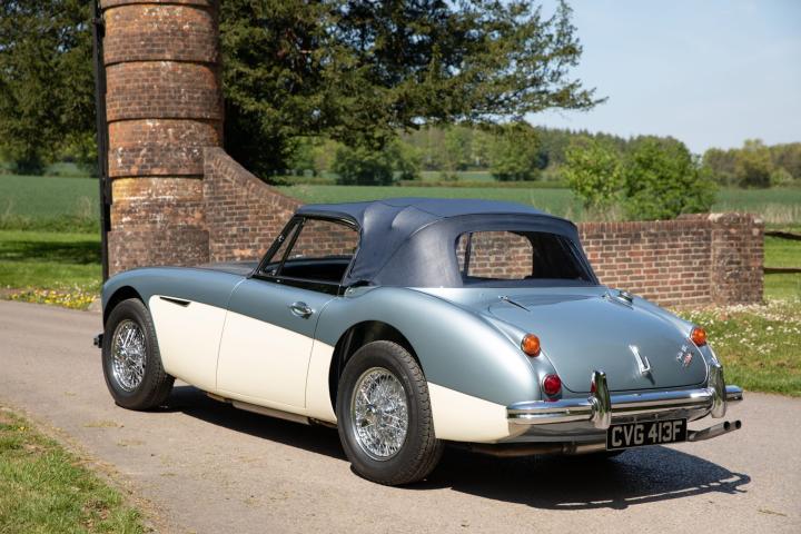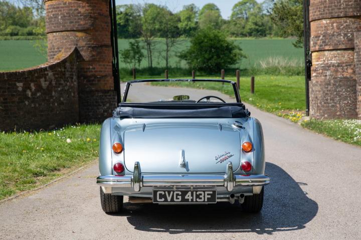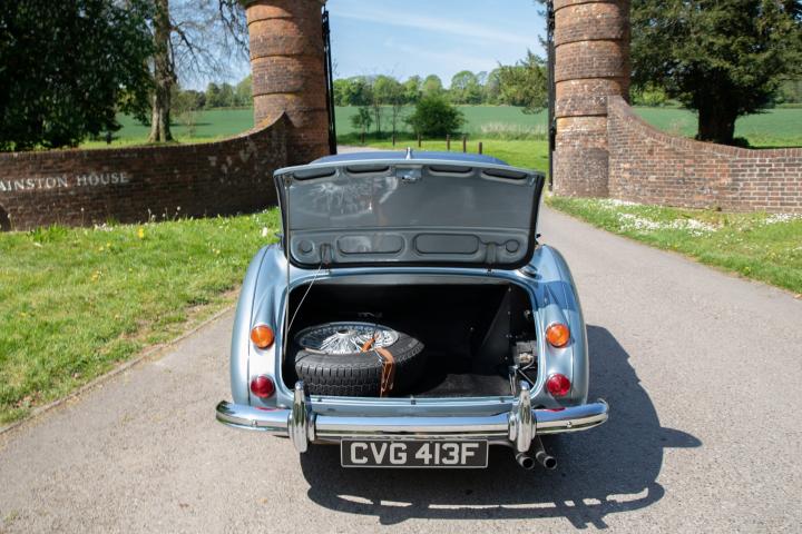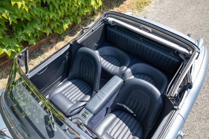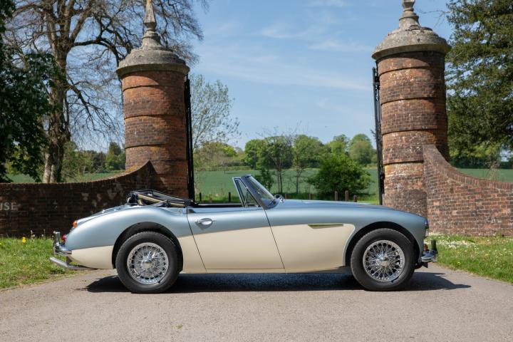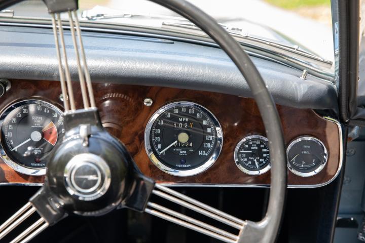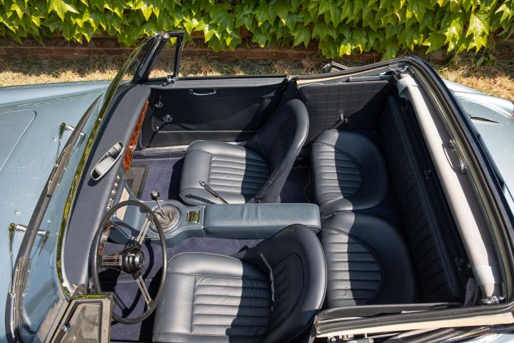 Most pleasingly, the fresh Healey Blue Metallic paint is the original factory colour for this example, faithfully reproduced at a great quality that is far superior to the 1967 factory finish. The engine is the original, as is the gearbox and rear axle. All body panels appear to be original and the car was rebuilt on its original chassis. The car sit on 60 spoke chrome wire wheel with Vredestein tyres new at the time of restoration.