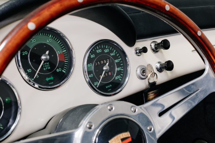 The 356 Roadster was conceived as the successor of the Speedster. The main differences with the more common, less rare, Cabriolet 356 B variant were the removable windshield frame, the Speedster-like minimalist dashboard, the lighter and less bulky soft-top frame, the Roadster offered a purer, sport-oriented character than the contemporary Cabriolet. Produced between 1959 and 1961 and with a total run of 2.653 examples, the Roadster is revered as one of the most interesting 356 models, specially in its “Super 90” variant.