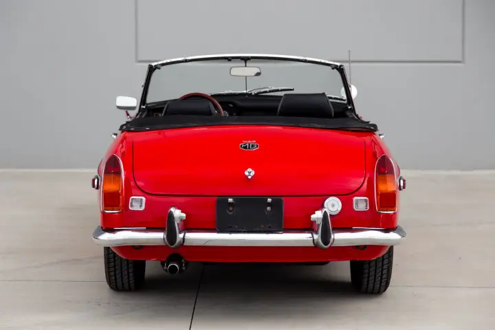 This rock solid MGB Roadster has enjoyed the same southern Florida owner for 26 years. The car is void of rust .Review the pictures posted and note the straight body panels and perfect body panel gaps. The paint on the car is as nice as reflected in the photos. The chrome on the car is good. Tires are deep in tread mounted to the original Rostyle wheels. The soft top is in good order as is the interior components ,carpets are good, seats are good, door cards are straight. Gauges are clean, crisp and work as designed.
