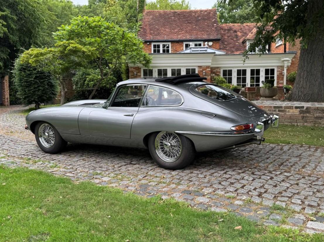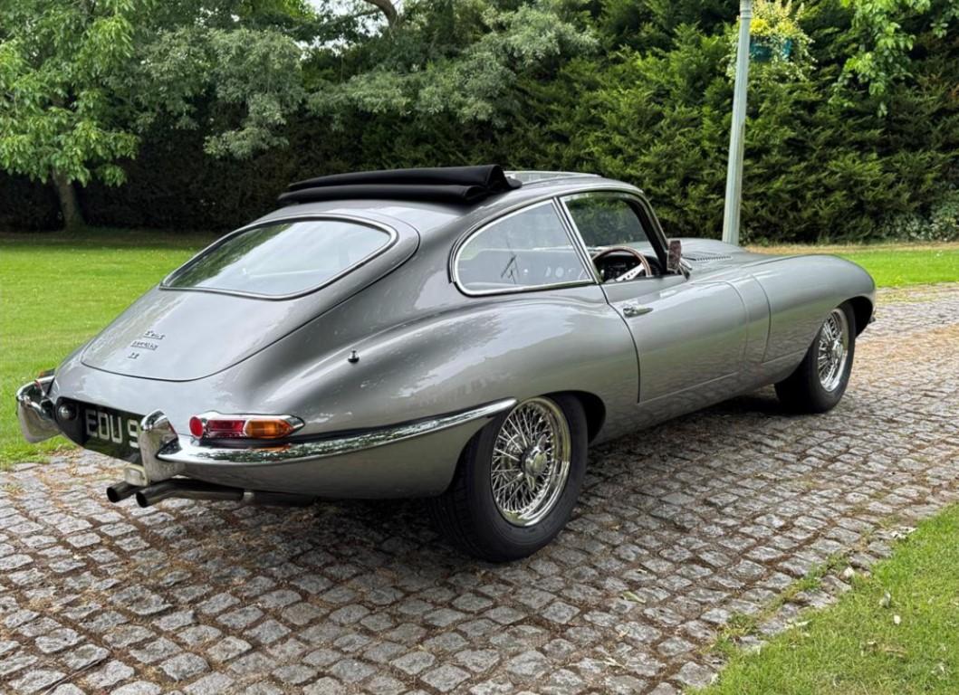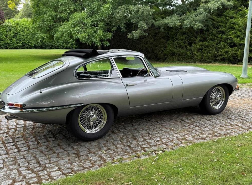 1965 Jaguar E type series 1 4.2 Fixed head coupe finished in Aston Martin in Sky Silver and tastefully trimmed with a perfect Black hide interior and the benefit of a full length Tudor Webasto Sunroof finished in black mohair. This is an original UK supplied example and the present owner commissioned the well-respected Jaguar restorers, Southern Classics to carry out a complete rebuild of this car back in 2011 to “Fast Road Specification”, mainly for the purpose of continental touring. This process included a full engine rebuild by Classic and Modern Engine services and enhancing the engine performance to include high compression pistons, a fully balanced crankshaft and con-rods and clutch assembly with further additional gas-flowing of the cylinder head, all of which has resulted in increased brake horse-power and low-down torque. The original 4 speed gearbox was also completely rebuilt which coupled with what we believe to be a high ratio rear axle has resulted a low engine revs when cruising at high speeds. The braking system was suitably improved with the use of Coopercraft brake calipers and an improved servo system. The original cast exhaust manifolds have been replaced with free flow stainless steel manifolds, coupled to a full stainless steel exhaust system . At the same time, the car was the subject of a bare metal repaint and a tasteful retrim in black leather. The car sits on slightly wider than standard stainless steel chrome wire wheels, shod with Avon Turbospeed radial tyres for improved road holding. With this beautiful and practical classic E type is a detailed history which records most of the vast expenditure over several years. Please call for a more detailed specification. One of the very best available at £120,000