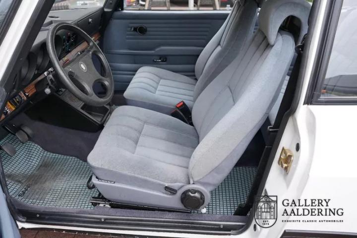 The body is fitted with beautiful thin sheet metal with correct fits. The moldings and bumpers are all in very good condition and look beautiful. From the exterior you can immediately see that this is a beautiful original car. The paint is also completely original and is in beautiful condition with only very minimal traces of use that match the age and mileage of the car. The car stands on beautiful minilite wheels with good tires in the correct sizes.